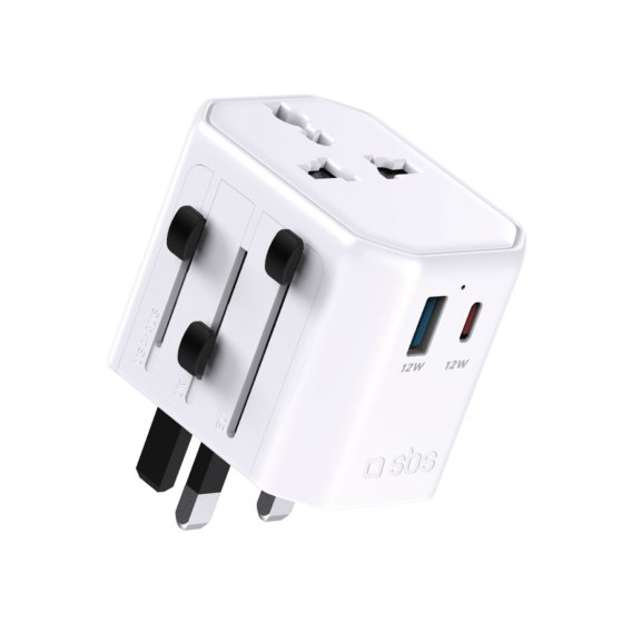 Adapter sieciowy podróżny uniwersalny USB-C USB-A EU UK US AUS - biały