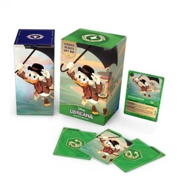 Gift Set to idealny pomysł na prezent dla wszystkich fanów Disney-a. Zawiera 5 Boosterów (zestawy dodatkowe kart), kartę Promo Scrooge McDuck oraz Pudełko do przechowywania kart z motywem graficznym Scrooge McDuck.