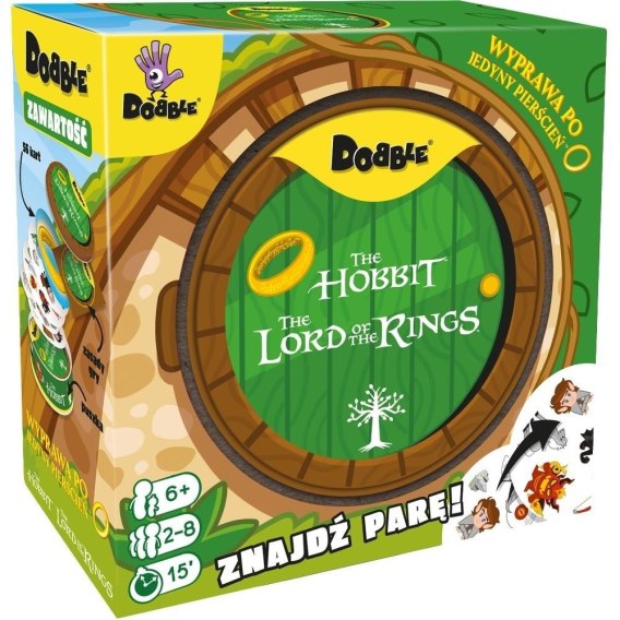 W Dobble można grać na wiele sposobów, a 5 z nich jest opisanych w instrukcji jako minigry. W jednej z nich możesz nawet zostać Powiernikiem Pierścienia! Dodatkowo, aby utrudnić zabawę, symbole bywają odwrócone i miewają różne rozmiary. Same karty są okrągłe i kolorowe, a każda z nich ma unikalny zestaw symboli związanych ze światem Hobbita i Władcy Pierścieni.