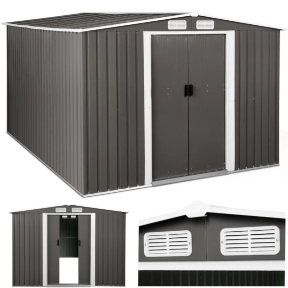 Domek narzędziowy marki Uniprodo pozwala bezpiecznie przechować sprzęt ogrodniczy, zabawki i narzędzia. Wymiary 313 x 179 x 258 cm zapewniają wystarczająco dużo miejsca do przechowywania nawet mebli czy rowerów. Drzwi 96 x 154 cm umożliwiają wygodny dostęp, można je szybko i bezpiecznie zamknąć na kłódkę (brak w zestawie). Odporna na warunki atmosferyczne szopka ma dwuspadowy dach, którego szczyt jest wzmocniony i zapewnia optymalne wykorzystanie przestrzeni. Dach zapewnia doskonałe odprowadzanie wody w deszczu. Domek nie ma spodu, dzięki czemu wilgoć przenika bezpośrednio do gruntu. Otwory wentylacyjne gwarantują optymalną cyrkulację powietrza i zapobiegają gromadzeniu się wilgoci, a nawet pleśni. Czyszczenie i konserwacja są ograniczone do minimum. Montaż szopy jest nieskomplikowany. Domek imponuje długą żywotnością. Wykonany został z ocynkowanej stali. Jest ona szczególnie odporna na korozję, a jednocześnie wyróżnia się niskimi kosztami utrzymania i dobrą możliwością recyklingu po zakończeniu użytkowania.
