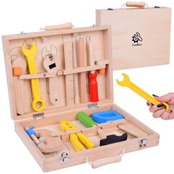 - Rozwija zdolności manualne i koordynację ruchową. - Wspiera kreatywność i wyobraźnię. - Uczy podstawowych narzędzi i ich funkcji. - Pomysł na prezent idealny. - Drewniana skrzynka narzędziowa to doskonały wybór dla małych majsterkowiczów! Zapewnia nie tylko godziny wspaniałej zabawy, ale także rozwija - zdolności manualne, wyobraźnię i kreatywność. Naśladowanie taty lub dziadka podczas prac remontowych zamienia się w ekscytującą przygodę.
