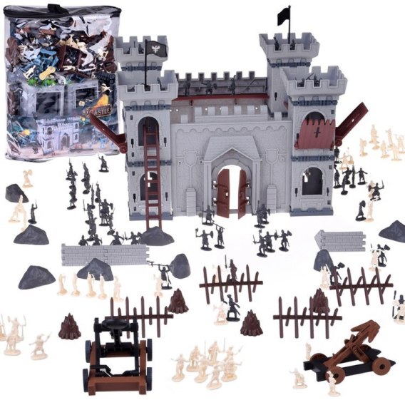 Żołnierzyki - zamek z figurkami to jedna z tych ponadczasowych zabawek, które znają nie tylko nasi rodzice czy dziadkowie, ale także wiele kolejnych pokoleń. Niemal każdy chłopczyk w dzieciństwie marzy o tym, by stać się bohaterem, a czy jest ktoś odważniejszy od żołnierza broniącego cywilów? Ten duży zestaw pozwala na wiele godzin fantastycznej zabawy, pełnych epickich bitew i niezapomnianych przygód. Z wieloelementowego zestawu można stworzyć nie jedną wojskową strategię, co pozwala rozwijać kreatywność i strategiczne myślenie. Figurki wykonane są z plastiku w militarnych kolorach.