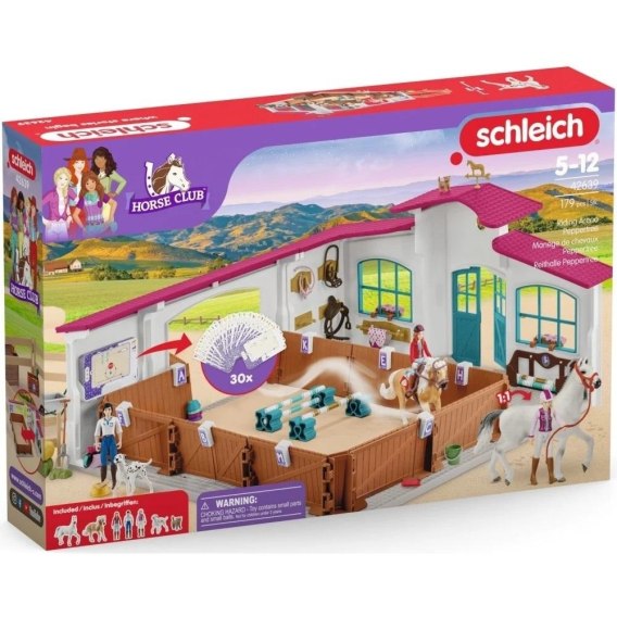 Arena jeździecka dla koni jest bogato wyposażonym zestawem Schleich. Realistyczna ujeżdżalnia stanowi świetne rozszerzenie świata Horse Club.