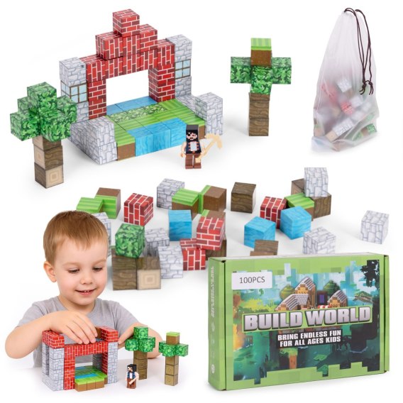 W komplecie znajduje się 100 magnetycznych sześcianów oraz figurka postaci, co daje ogromne pole do kreatywnej zabawy i łączenia.