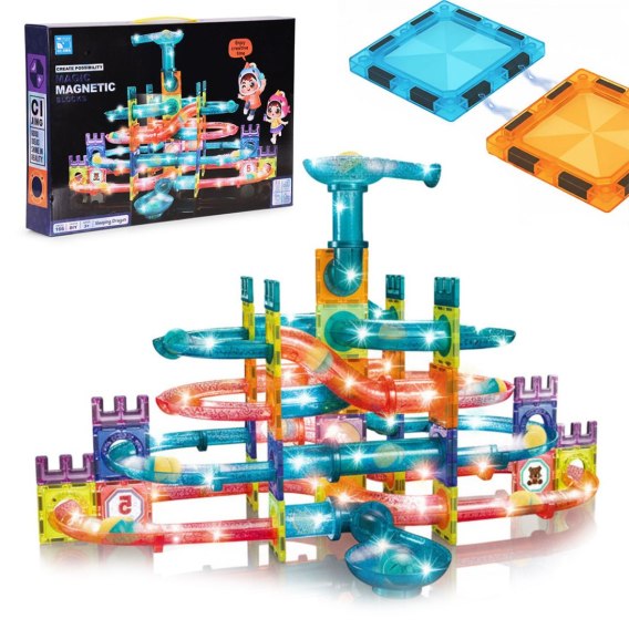 Klocki magnetyczne tor kulkowy LED klocki konstrukcyjne kulodrom 166 elementów