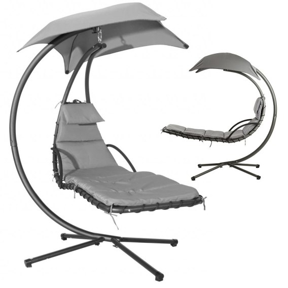 Wisząca leżanka zawdzięcza swoją stabilność i bezpieczeństwo odpowiednio wyprofilowanemu stelażowi, który pozwala na kołysanie i huśtanie na leżaku. Duży, regulowany daszek zapewni przyjemny cień podczas upalnych dni, a lekkie bujanie dodatkowo umili nam czas na spędzony na zewnątrz. Wodoodporny, miękki materac z zagłówkiem gwarantuje komfortowy wypoczynek.