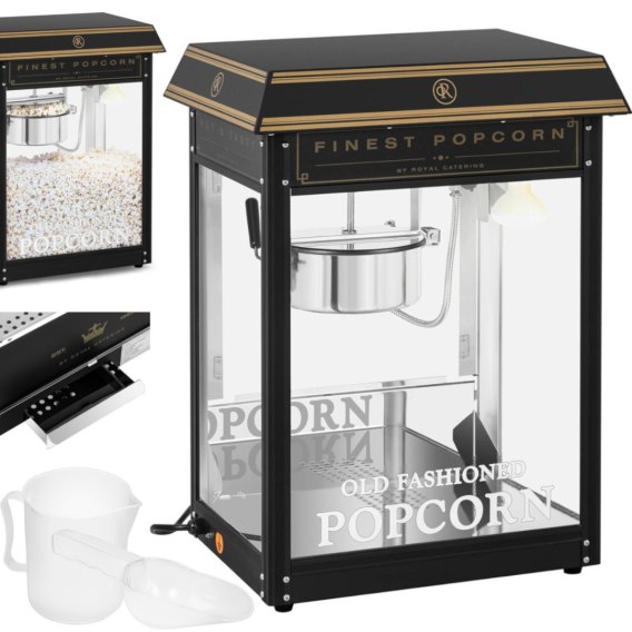 Maszyna automat urządzenie do prażenia popcornu retro TEFLON 1600 W 5-6 kg/h - czarno-złota