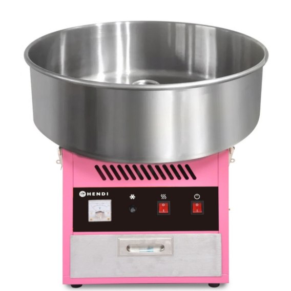 Maszyna do waty cukrowej elektryczna marki Hendi sprawdzi się w trakcie imprez organizowanych z udziałem dzieci zarówno w lokalach gastronomicznych jak i w domowym zaciszu. Misa wykonana została ze stali nierdzewnej, nadaje się do mycia w zmywarce. Mocowana jest do obudowy silnika za pomocą 4 klamer. Obudowa silnika ze stali lakierowanej w kolorze różowym swoją atrakcyjnością przyciąga najmłodszych konsumentów. Szuflada w obudowie silnika na zapas patyczków lub inne drobne akcesoria. Urządzenie posiada oddzielny włącznik prądu oraz ogrzewania ze zintegrowanymi lampkami kontrolnymi. Woltomierz wskazuje aktualne napięcie. Bezpiecznik przeciwprzeciążeniowy zabezpiecza silnik przed spaleniem w przypadku jego zablokowania.