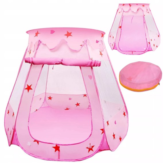 Dziecko od pierwszych chwil zabawy może rozwijać wyobraźnie oraz kreatywność bawiąc się w podróże, wyprawy czy zabawę w dom. Piękna kolorystyka przedstawiająca różowy pałacyk sprawi, że Twoje dziecko chętnie będzie spędzało czas w namiociku. Materiałowy namiot w kształcie domku z motywem gwiazdek i serduszkami to idealny prezent dla każdego dziecka, które lubi spędzać czas w własnym zaciszu lub bawić się w gronie rodziny czy rówieśników.