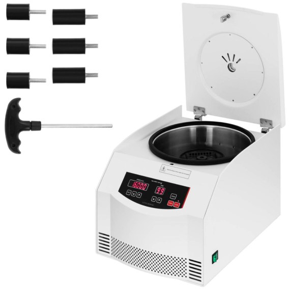 W wirówce można jednorazowo umieścić 4 probówki 0,2 ml. Prędkość można regulować w zakresie 300-16000 obrotów na minutę, co pozwala dostosować urządzenie do rodzaju badanego płynu. Urządzenie napędza cichy bezszczotkowy silnik DC. Przed uruchomieniem sprzętu należy opuścić pokrywę, o niedomknięciu wieka poinformuje alarm. Timer pozwoli na ustalenie czasu wirowania w przedziale 0-99 min. W wirówce zastosowano automatyczne obliczanie obrotów i szybkości. System autodiagnostyki chroni przed zbyt dużymi prędkościami, awariami napięcia i zamka oraz brakiem równowagi. Cyfrowy panel pozwoli na łatwe określenie wybieranych parametrów a także wybór 1 z 10 programów. Klawiatura pokryta jest folią, co umożliwia dezynfekcję bez ryzyka uszkodzenia urządzenia. Obudowę wykonano ze stalowej blachy Q235 odpornej, trwałej, lekkiej i niewielkich rozmiarów. Cechy produktu: