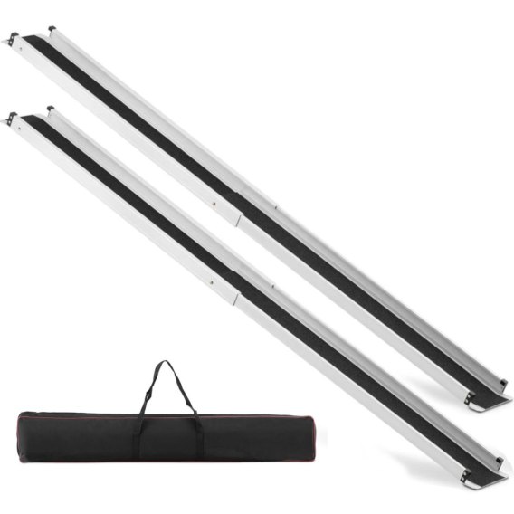 Kod producenta: 10062522 Szyny najazdowe marki MSW sprawdzą się jako rampa dla wózków inwalidzkich, kosiarek, skuterów itp. Są bezpieczne i gotowe do użycia w zaledwie kilku prostych krokach oraz mają wymiary idealne do transportu. Pomimo niewielkiej wagi, każda z nich może udźwignąć do 272 kg. Szyny wykonano z anodyzowanego aluminium, wyróżniają się szczególną wytrzymałością i mogą być używane nawet z twardymi kołami lub przedmiotami o ostrych krawędziach. Wymiar złożonych szyn wynosi 121 x 18,9 cm, a rozłożonych 213 x 18,9. Wyposażono je także w antypoślizgową powierzchnię odporną na ścieranie wykonaną z PVC o piaskowanej powierzchni. Wystające ścianki zapewniają doskonałą ochronę podczas wjazdu. Ponadto profilowana powierzchnia zapewnia dobrą przyczepność nawet podczas deszczu. Cechy produktu: