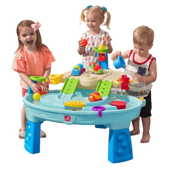 Dwupiętrowy stół dla dzieci Step2 Ball Buddies Adventure Center! Oprócz klasycznej wywrotki Ball Buddies, ten stół do zabawy na zewnątrz dla dzieci zawiera helikopter Ball Buddies, łódź i pociąg - które mogą przewozić dwie piłki do zabawy w tym samym czasie! Ball Buddies nie mogą się doczekać przygody wokół rzeki lub rejsu po zakrętach odlewanych dróg i mostów. Dzięki dużemu obszarowi, wielu dołączonym akcesoriom i wielu sposobom zabawy, ten dziecięcy stół wodny jest doskonałą opcją do zaangażowania się w zabawę społeczną dla wielu dzieci. Ponadto poszczególne stacje wokół basenu oferują dodatkowe opcje dla najmłodszych, którzy chcą bawić się sami. Mali poszukiwacze przygód mogą używać obręczy do rzucania piłek do wody i cieszyć się ekscytującą zabawą wodną za pomocą koła wodnego i dołączonych miarek. Na dnie znajduje się nawet interaktywne koło, dzięki czemu maluchy mogą wprawić wodę w ruch i stworzyć płynącą rzekę.