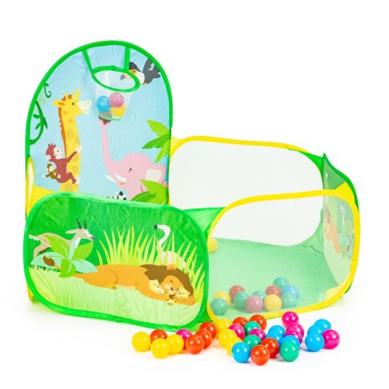 Podłoga jest wzmocniona, dzięki czemu namiot nadaje się do zabawy w domu oraz na dworze. Do zestawu dołączono 50 plastikowych piłeczek o średnicy 6 cm, które zapewniają wiele godzin świetnej zabawy.