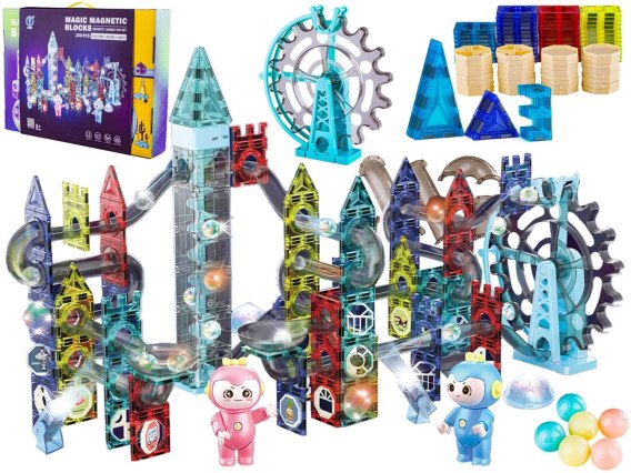 Świecące Klocki Magnetyczne, Tor Kulkowy Dla Kulek 230 Elementów Kulodrom