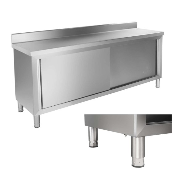 Szafka stalowa do kuchni z blatem roboczym i rantem ze stali nierdzewnej szer. 200cm