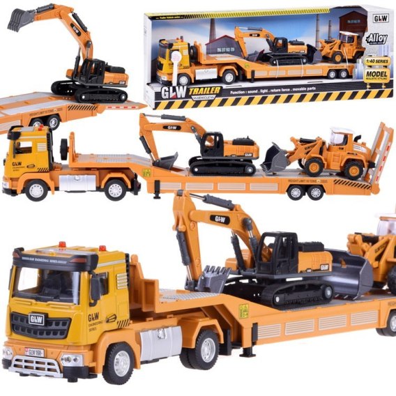 Tir z Lawetą + Koparka i Spychacz 1:40 - Zestaw Wymarzonego Małego Budowlańca!