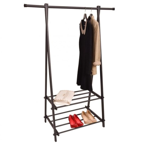 WIESZAK STOJAK Z PÓŁKAMI CZARNY 2 PÓŁKI