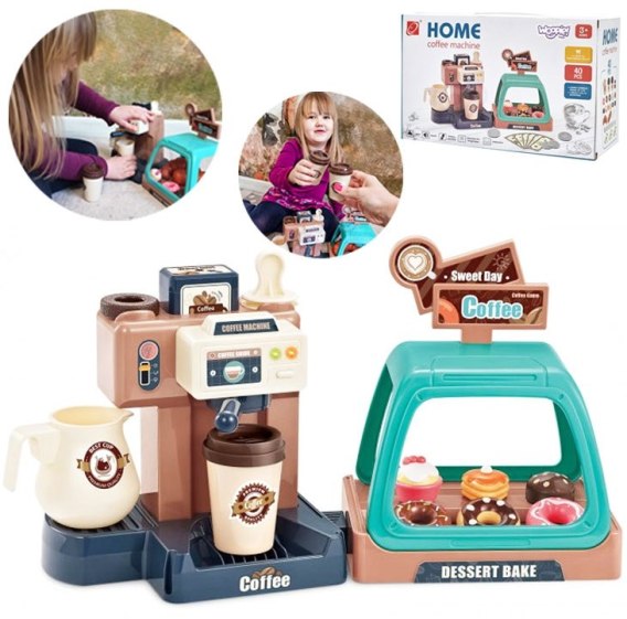 Ekspres do kawy od marki WOOPIE to idealny zestaw dla dzieci, które uwielbia wcielać się w rolę dorosłych. Zestaw oprócz ekspresu i wiaty na ciastka zawiera słodkości takie jak donuty czy babeczki w różnych smakach. Ekspres i witrynę można ze sobą dowolnie łączyć lub używać oddzielnie. Ekspres do kawy ma funkcję przepływu wody, wystarczy nalać od góry wodę do pojemnika, zamontować kolbę ekspresu, podstawić kubeczek i kawa gotowa! Ponadto wydaje dźwięki/odgłosy mielenia i parzenia kawy, świeci się wtedy mrugająca czerwona lampka, a gdy kawa będzie gotowa zaświeci się zielone światło i usłyszymy sygnał zakończenia pracy. Po zamontowaniu portu filtra usłyszymy również odgłos nalewania kawy. Zabawka z pewnością zaciekawi każde dziecko. Zabawa w sklep z przyjaciółmi pomoże rozwinąć świadomość i zdolności społeczne.