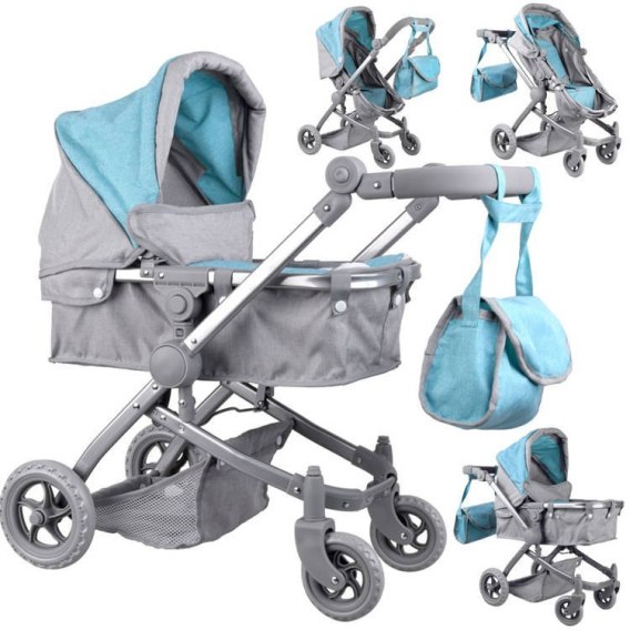 Duży, zwrotny wózek typu gondola z opcją 4w1 dla najmłodszych zachwyci każdą małą opiekunkę lalek i misiów i innych przytulaków. Wózek bardzo starannie i dokładnie wykonany, z lekkiej konstrukcji. Jego atutem jest to iż mając jeden wózek można go przekształcić z głębokiego wózka na spacerowy, bez żadnych dodatkowych koszów, przepinek. W łatwy sposób dzięki paru zatrzaskom przekształcamy gondole w wózek spacerowy. Lekka konstrukcja pozwoli na płynne prowadzenie go przez małą dziewczynkę lub chłopczyka.