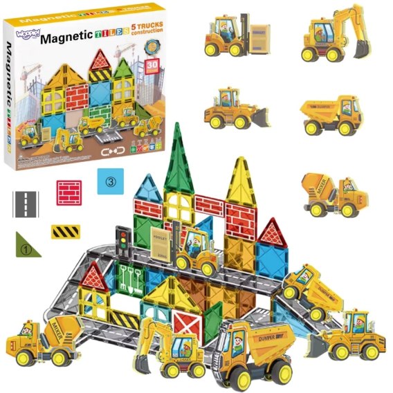 Woopie Zestaw Klocków Magnetycznych z Pojazdami Budowlanymi