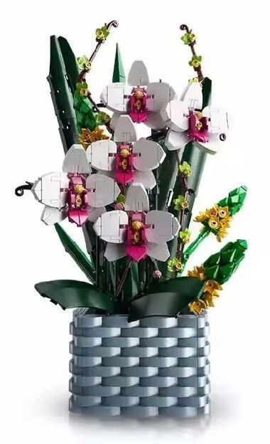 Zestaw 1158 klocków konstrukcyjnych do samodzielnego stworzenia kompozycji kwiatów z doniczką. Zabawka przeznaczona dla dzieci od 8-go roku życia. Klocki i elementy wykonane zostały z wysokiej jakości tworzywa sztucznego. Zestaw realistycznie oddaje kształty i kolory prawdziwych roślin, m. in. storczyków. Możliwość ułożenia kwiatów, liści i łodyg według własnego pomysłu. W zestawie dołączono instrukcję obrazkową. Układanie klocków konstrukcyjnych rozwija u dzieci zdolności manualne, wyobraźnię przestrzenną i cierpliwość.