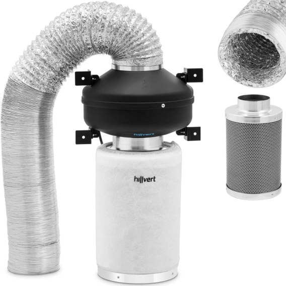 - Zestaw składa się z wentylatora kanałowego, rury wentylacyjnej i filtra węglowego,