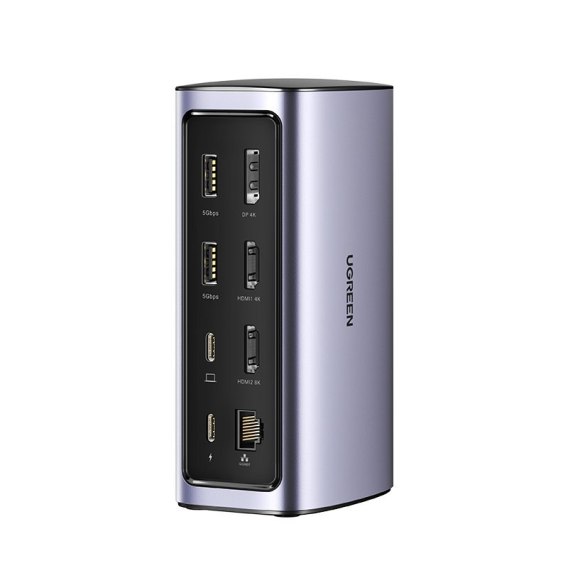 Współczesne laptopy posiadają zbyt mało portów, aby obsłużyć wszystkie dodatkowe urządzenia, których potrzebujesz. Wielofunkcyjna stacja dokująca od Ugreen oferuje wsparcie użytkownika w każdym aspekcie dzięki 12 portom rozszerzeń takich jak USB C, USB, HDMI, DP, RJ45, AUX, SD, TF. Zasilanie przez port USB C PD