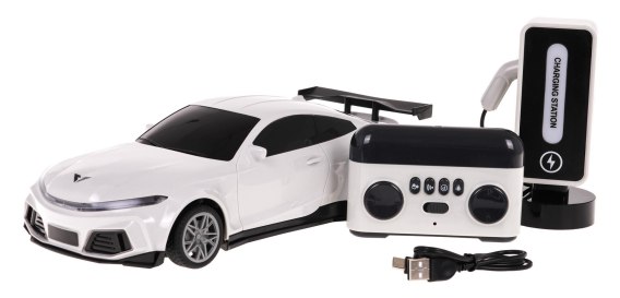 Zdalnie sterowane auto elektryczne ze stacją ładowania dla dzieci od 3-go roku życia. Pojazd posiada wytrzymałą karoserię, przednie i tylne oświetlenie oraz gumowe opony, które zapewniają mu dobrą przyczepność. Sterowany jest pilotem i jeździ we wszystkich kierunkach, do przodu, do tyłu, w prawo i w lewo. Po rozładowaniu parkujemy super autko elektryczne przy stacji ładowania i ładujemy. Auto zasilane jest akumulatorem typu 3,7 V 400MAH (w zestawie), stacja ładowania 3,7 V 1200 MAH (w zestawie), pilot bateriami typu 2 x AA 1,5 V (brak w zestawie).