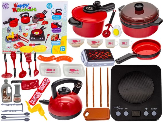 Do dyspozycji małej gospodyni / gospodarza jest cała gama produktów: płyta grzewcza, naczynia, garnki, czajnik i pozostałe akcesoria.