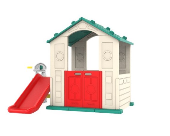 Domek Ogrodowy 3w1 dla dzieci Zielony Dach + Zjeżdżalnia + Koszykówka