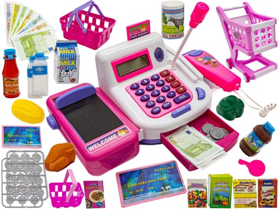 Kasa sklepowa to zabawka z mnóstwem akcesoriów, dzięki którym każde dziecko będzie mogło bawić się w sklep, gdzie i kiedy tylko zapragnie, a przede wszystkim poprzez zabawę nauczy się, jak robić zakupy w prawdziwym, współczesnym sklepie.