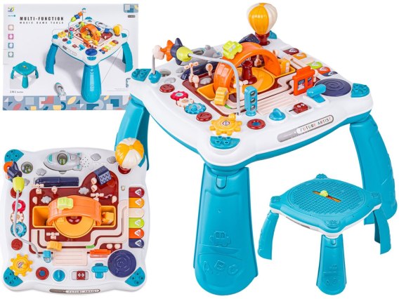 Edukacyjny Interaktywny Stolik Dla Dzieci 2w1 POJAZDY Pianinko Rakieta Akcesoria Niebieski