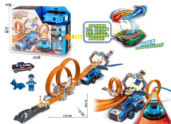 Ekstramalny tor wyścigowy dla dzieci 3+ Autko zmieniające kolor + 2 pętle + wyrzutnia
