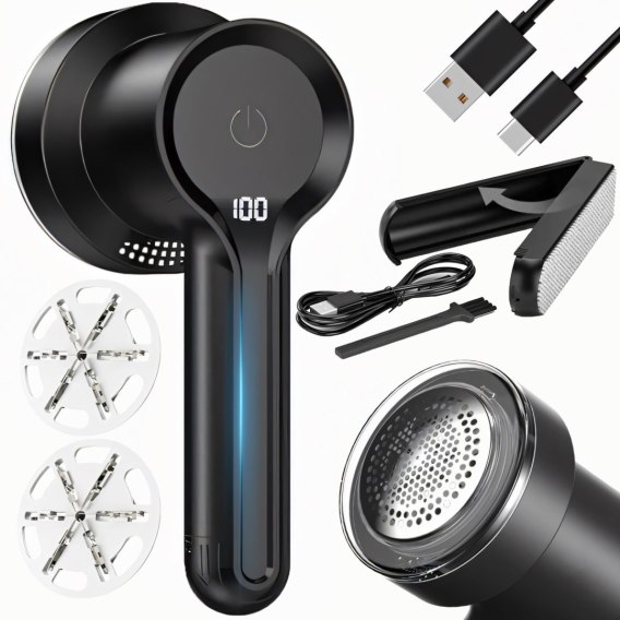 Kod producenta: 1029588 Golarka do ubrań Retoo ER1230 to wydajne i praktyczne urządzenie do usuwania zmechaceń z odzieży i tkanin. Wyposażona w silnik o mocy 5W oraz 3-stopniową regulację prędkości (6500 / 7500 / 8500 RPM), skutecznie radzi sobie nawet z uporczywymi kłaczkami. Wbudowany wyświetlacz LCD informuje o poziomie baterii i wybranym trybie pracy. Urządzenie posiada pojemny akumulator 1200 mAh, który zapewnia do 540 minut działania, a ładowanie odbywa się przez port USB-C. Golarka wykonana jest z trwałego tworzywa ABS i została wyposażona w system bezpieczeństwa automatycznie wyłączający silnik po zdjęciu pokrywy ostrzy. Cechy produktu: