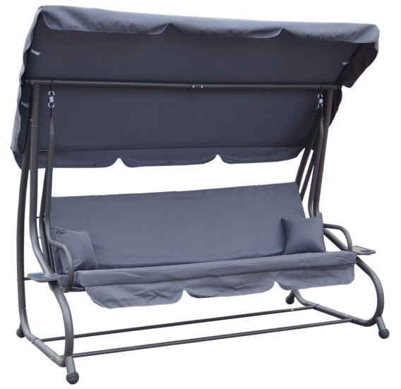 Huśtawka ogrodowa z rozkładanym siedziskiem i regulacją daszka, szara [8011 NEW SZ]