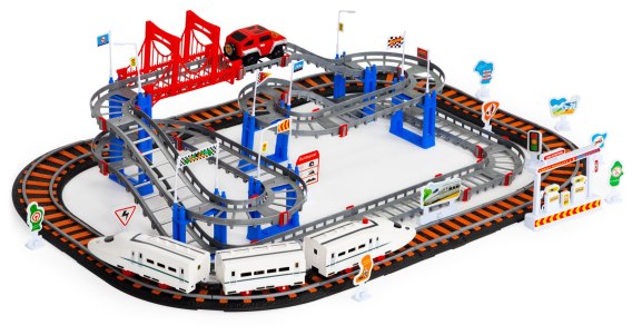 Dwa osobne tory to nie lada gratka dla małych miłośników budowania i zabawy pojazdami. Zestaw składa się z toru dla kolejki oraz drugiego, wielopiętrowego, po którym pędzi terenówka. Wielką frajdę sprawi możliwość dowolnego łączenia torów, dzięki temu za każdym razem możesz stworzyć inną trasę przejazdu.