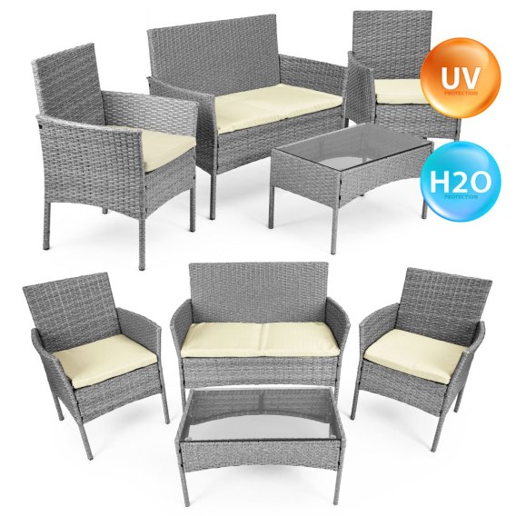 Meble ogrodowe wykonano z wytrzymałego technorattanu, cenionego za wyjątkowe właściwości użytkowe i estetyczne. Technorattan nie blaknie pod wpływem promieni słonecznych, nie chłonie wilgoci ani nie odkształca się pod wpływem deszczu czy zmian temperatury, co sprawia, że doskonale sprawdza się w każdych warunkach atmosferycznych. Dodatkowo jego powierzchnia jest łatwa do utrzymania w czystości - wystarczy przetrzeć ją wilgotną ściereczką, aby meble znów wyglądały jak nowe.