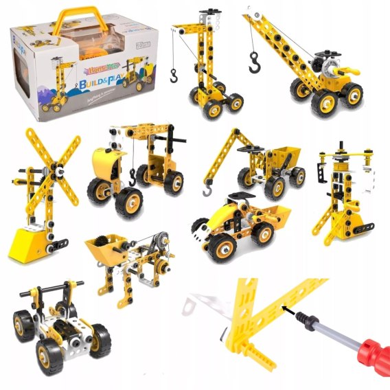 Z elementów o różnych kształtach powstaną m.in. terenowy samochód, dźwig, wyścigówka - albo coś całkiem z wyobraźni. Jednocześnie składasz 1 model, później rozkręcasz i budujesz kolejny.