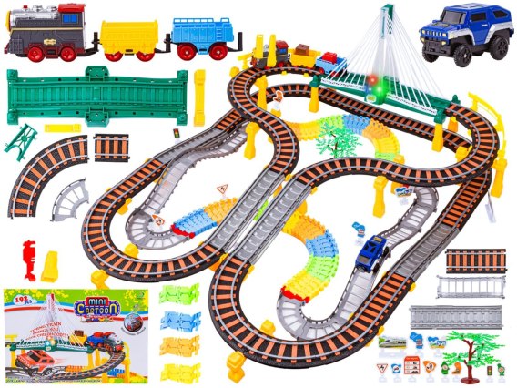 Lokomotywa oraz samochód posiadają osobne tory. Zestaw został wzbogacony o efekty świetlne oraz dźwiękowe. Podczas przejazdu mostem kolejka uruchamia efekty świetlne - zobaczymy wtedy wesoło migające, kolorowe światełka. Lokomotywa natomiast podczas jazdy wydaje dźwięki prawdziwego parowozu :)