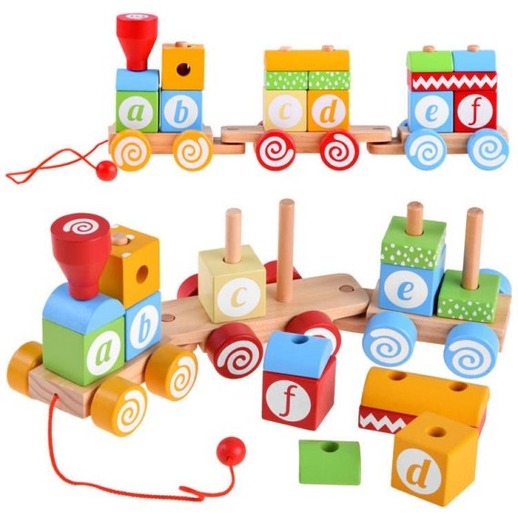Kolejka drewniana pociąg klocki z literkami ZA4116