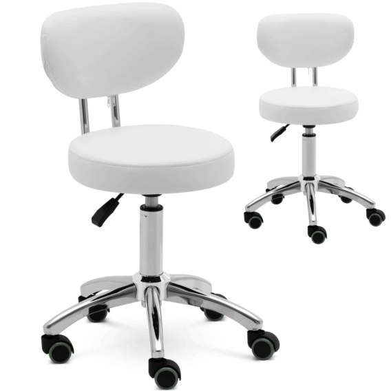 Krzesło taboret hoker kosmetyczny z oparciem na kółkach do 150 kg ASCONA biały