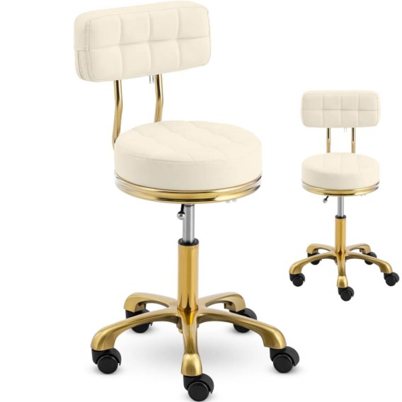 Krzesło taboret hoker kosmetyczny z oparciem na kółkach do 150 kg GELA beżowo złoty