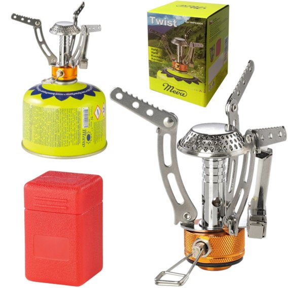 Kod producenta: UKP24002 Wysokiej jakości kuchenka turystyczna TWIST renomowanej marki MEVA Czechy to doskonałe narzędzie do przygotowywania posiłków w terenie. Kuchenka posiada trzy szeroko rozkładane ramiona na których można używać patelni lub garnków o średnicy do 20cm i wadze do 5kg. Kuchenka kempingowa TWIST może być zasilana kartuszami gazowymi z zaworem z gwintem 7/16 cala. Palnik wyposażony został w automatyczny zapalnik uruchamiany przyciskiem. Precyzyjne i solidne wykonanie kuchenki daje gwarancję bezproblemowej pracy w trudnych warunkach polowych. Lekka składana konstrukcja zapakowana w niewielkie etui z łatwością zmieści się w plecaku bez obciążania ekwipunku. Cechy produktu: