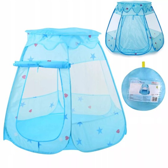 Dziecko od pierwszych chwil zabawy może rozwijać wyobraźnie oraz kreatywność bawiąc się w podróże, wyprawy czy zabawę w dom. Piękna kolorystyka przedstawiająca niebieski domek sprawi, że Twoje dziecko chętnie będzie spędzało czas w namiociku. Materiałowy namiot w kształcie domku z motywem gwiazdek i serduszkami to idealny prezent dla każdego dziecka, które lubi spędzać czas w własnym zaciszu lub bawić się w gronie rodziny czy rówieśników.