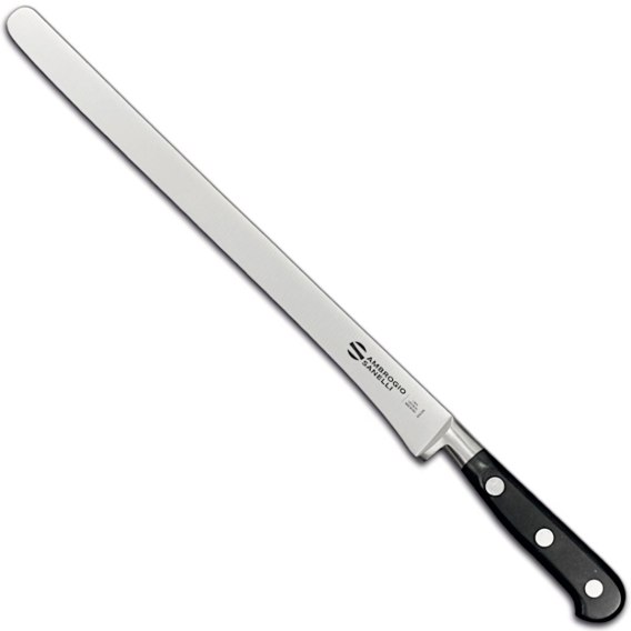 Linia noży Chef firmy Ambrogio Sanelli łączy ze sobą tradycję z nowymi rozwiązaniami technologicznymi. Ostrza noży są kute z jednego kawałka wysokiej jakości stali nierdzewnej, każde z nich jest starannie wykończone i sprawdzone. Charakteryzują się wysoką jakością i siłą cięcia oraz odpornością na korozję. Pełny trzpień ostrza zachowuje jego równowagę i zapewnia długotrwałą żywotność. Najważniejsze cechy: