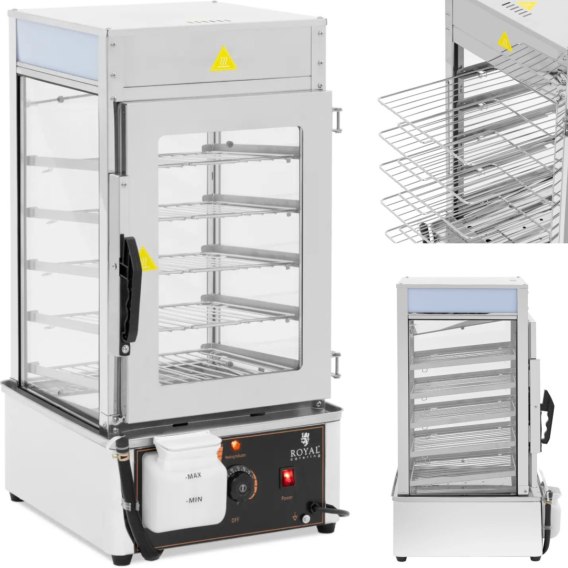 Kod producenta: 10013380 Parowar marki Royal Catering sprawdzi się w restauracjach, na stołówce czy w bufetach. Pozwala przygotować pierogi, pierożki dim sum i pampuchy, a także utrzymuje jedzenie w cieple bez wysychania. Dzięki dwuwarstwowej komorze ze szkła para i ciepło nie przedostają się na zewnątrz, co znacząco przyspiesza gotowanie. Nawet mrożone pierogi będą gotowe do podania w zaledwie 20 minut. Izolacja zapewnia stałą i równomierną dystrybucję pary, gwarantując doskonałe rezultaty każdego dnia. Pięć wyjmowanych rusztów, każdy o wymiarach 30 x 29,5 cm, pozwala przygotować duże ilości jedzenia za jednym zamachem. Urządzenie do gotowania na parze pomieści do 80 pierogów lub pampuchów o średnicy mniejszej niż 7 cm. Równomierne rozprowadzanie ciepłej pary na wszystkich poziomach sprawia, że każda kluska będzie doskonale ugotowana bez konieczności przekładania rusztów. Termostat pozwala ustawić temperaturę w zakresie 30 - 110deg;C. Urządzenie posiada nienagrzewający się uchwyt. Można więc otworzyć i zamknąć drzwiczki w dowolnym momencie bez ryzyka poparzenia. Gumowe nóżki na spodzie zapewniają stabilność bez przemieszczania się, nawet na gładkich powierzchniach. Cechy produktu: