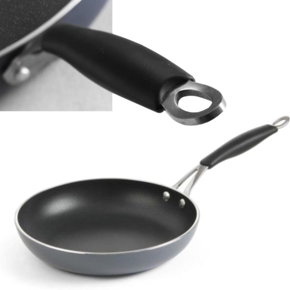 Numer producenta: Hendi 621158 Aluminiowa patelnia z nieprzywierającą teflonową powłoką marki Hendi to naczynie, które doskonale sprawdzi się w barach mlecznych, małych restauracjach, hotelach czy prywatnych domach. Charakteryzuje się szybkim i równomiernym rozprowadzaniem ciepła i uchwytem ze stali nierdzewnej pokrytym antypoślizgowym silikonem. Cechy i funkcje:
