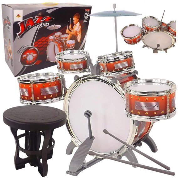 Perkusja dla dzieci z 5 bębnami, talerzem i krzesełkiem - rozwijaj muzyczny talent swojego dziecka!