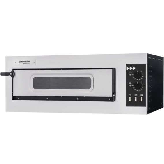 Kod producenta: 1F010026 Piec do pizzy firmy Prismafood umożliwia wypiek 1 pizzy ø450 mm. Przeszklone drzwi i wewnętrzne oświetlenie komory pozwalają na obserwację wypieku pizzy w komorze. Dno komory wyłożone jest szamotem dla szybkiego i równomiernego nagrzania komory. Urządzenie posiada oddzielone sterowanie temperaturą dzięki osobnym termostatom dla każdej grzałki. Front pieca wykonany został ze stali nierdzewnej, a pozostała część obudowy ze stali malowanej na czarno. Cechy produktu: