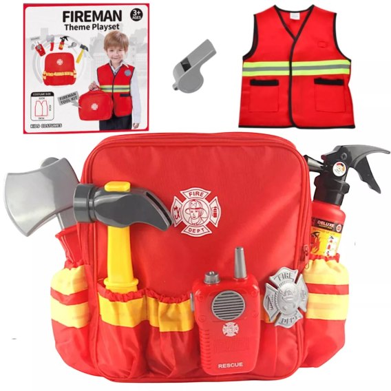 Plecak, kamizelka i realistyczne akcesoria, takie jak siekiera, młotek, gaśnica, krótkofalówka i odznaka strażaka, pozwolą poczuć się jak prawdziwy bohater gotowy do akcji!